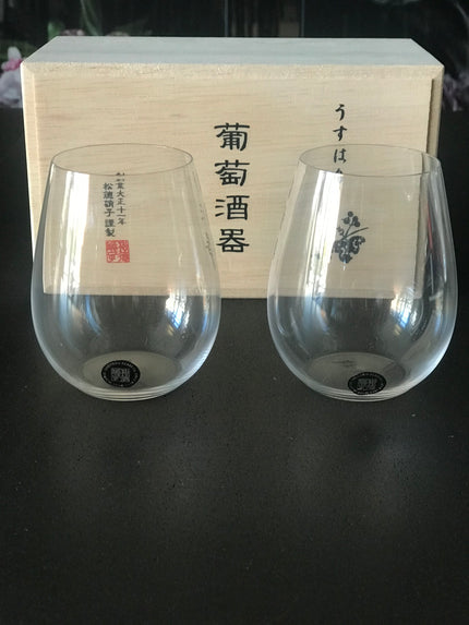 These remarkably thin drinking glasses called “Usu-hari” (thin glass) are each carefully hand blown and crafted by master craftsmen in the Sumida district in downtown Tokyo. They are created using the same techniques that was traditionally used for hand-making glass light bulbs. Less than 1mm thick, the feel of it in your hands, the sound ice makes when it is swirled in the glass, and fineness of the rim is truly exquisite—and unique to this glass.