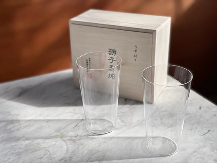 Box size: 13.5cm x 16cm x 8.5cm, contains 2 Usuhari Glass Tumbler M