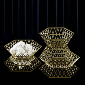 Product designs include playful brass rabbit door stoppers and salt and pepper shakers, giant thimble champagne coolers, polygonal baskets, palm leaf mirrors…