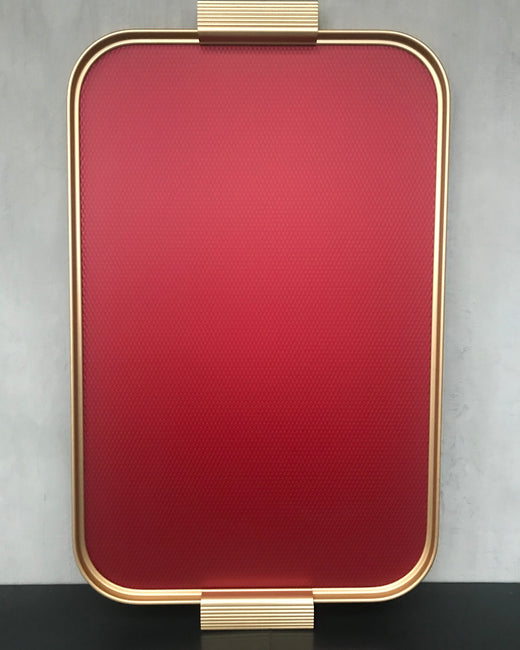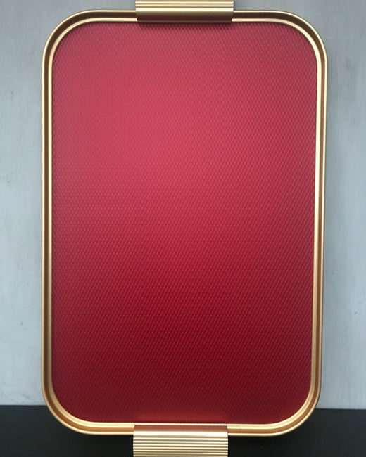 Anodised aluminium tray, brushed surfaces, hand finished with rubber grips.