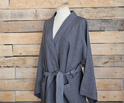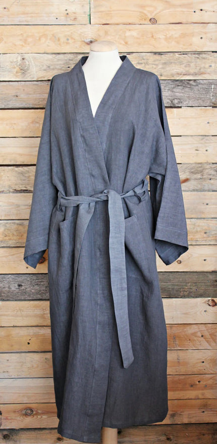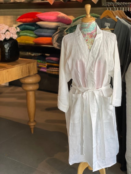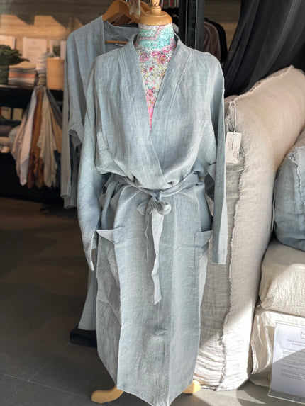 Pure linen kimono style bathrobes made in Italy. Plain solid colours with simple hem stitching.