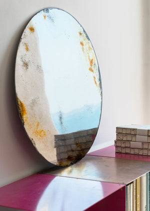 Then, for a complete change of pace, take a long look into Slow’s gorgeous Alice Mirrors. In accordance with their respect for ancient arts these gorgeously imperfect mirrors showcase the subtle and once-sacred art of grissaile glass oxidation.