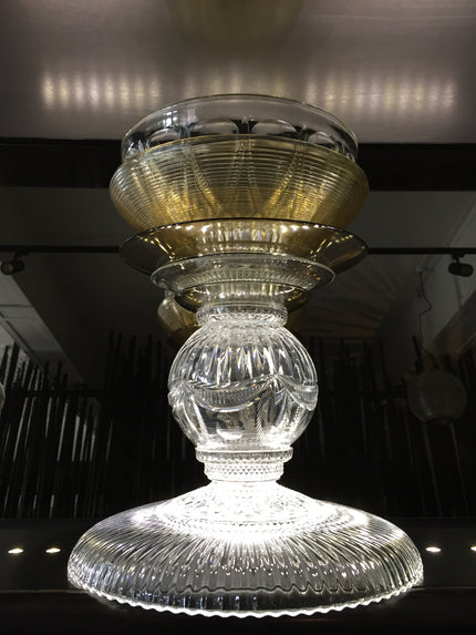 Netherland's artist and designer Roos Kalff crafts statuesque, dramatic vessels that blur the line between art and object. The translucent mustard pieces balanced between clear vintage and hand blown glass, gracefully command the eye of the viewer.