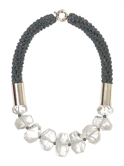Lyn&Tony Woven Grey Leather and Facetted Clear Crystal Neckpiece $825.00 Enquire for ordering Delivery Returns & Refunds Request Information Woven Grey Leather and Facetted Clear Crystal Neckpiece Brand Information