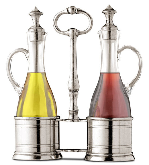 Todi, Pewter & Glass Oil & Vinegar Set, 18 x 6.5 x 23cm h
