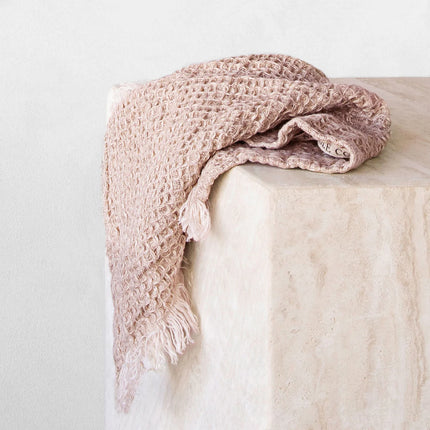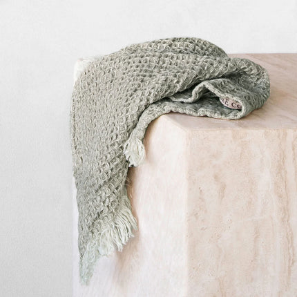 The dense linen waffle design has been pre-washed to prevent shrinkage and achieve our signature textural appeal, while softened linen fibres gently exfoliate while effectively removing dirt and makeup, leaving the skin feeling invigorated.