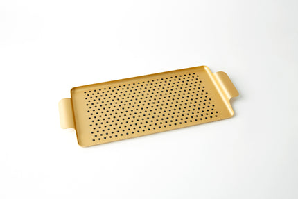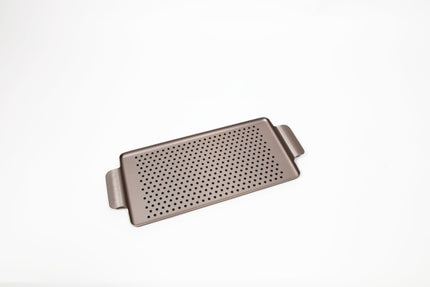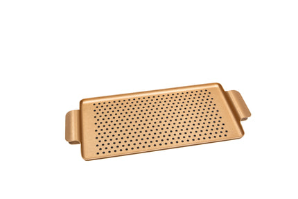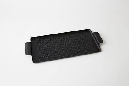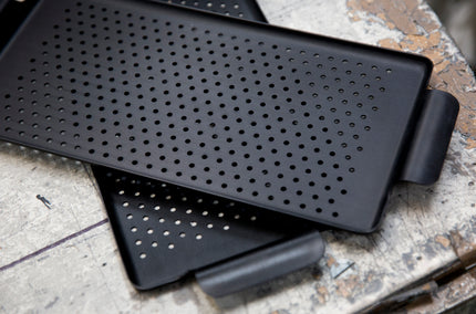 Anodised aluminium tray, brushed surfaces, hand finished with rubber grips.