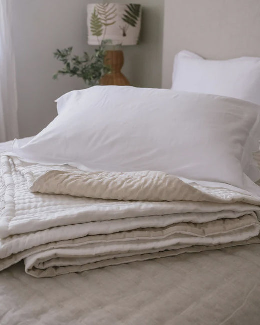 White Silk and Natural Linen Quilt, 260 x 225cm