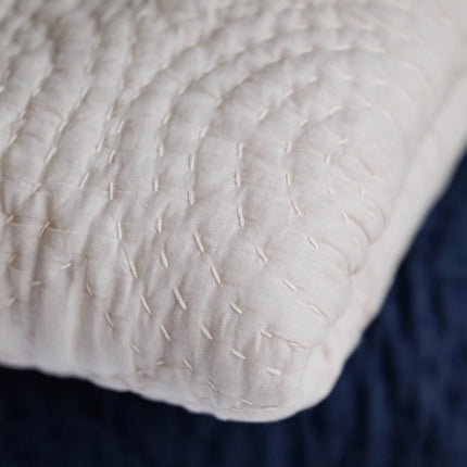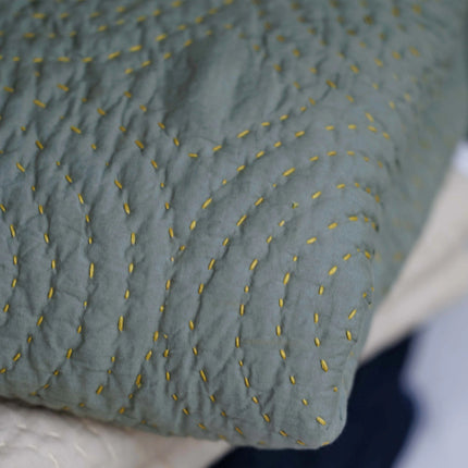 Matching 60 x 60cm Euro size cushion covers with a Kantha stitched front panel, contrasting plain cotton backing and centre tie closures are available separately.
