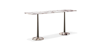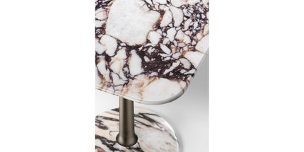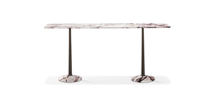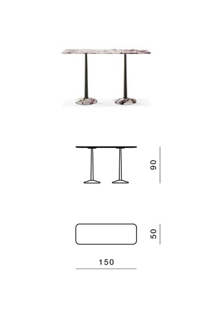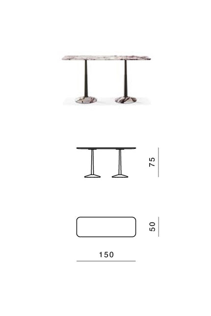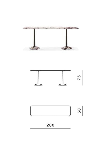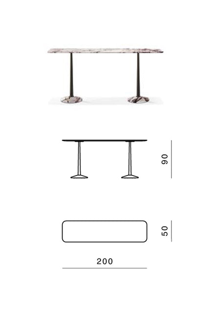 The several combinations of the three geometries and the three materials are enriched by some dimensional variations and, with the study and fine-tuning of their overall proportions, take their definitive and complete form where the elegant aluminum column, which draws and solves the connection and attachment between the top and the base, becomes the distinctive element of the project without taking over the other elements that take part in the compositional game.