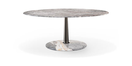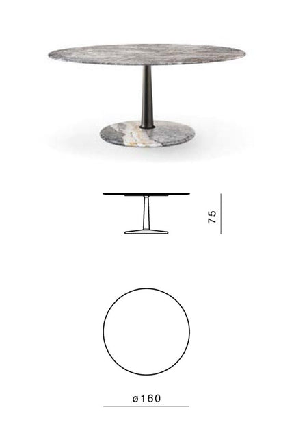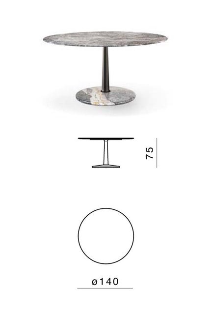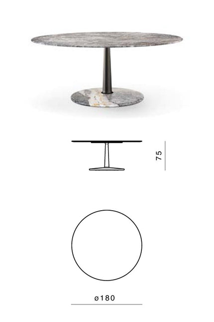 The several combinations of the three geometries and the three materials are enriched by some dimensional variations and, with the study and fine-tuning of their overall proportions, take their definitive and complete form where the elegant aluminum column, which draws and solves the connection and attachment between the top and the base, becomes the distinctive element of the project without taking over the other elements that take part in the compositional game.