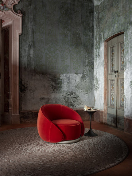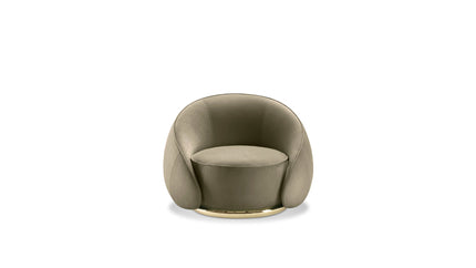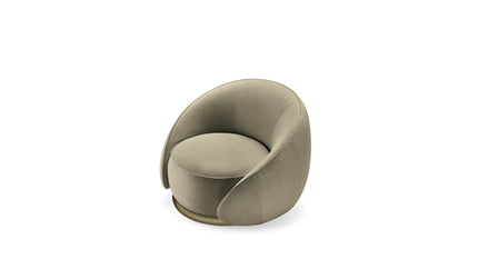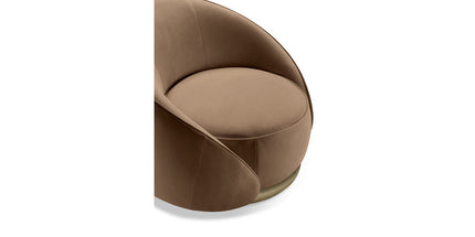Abbracci (hug in Italian) is wrapped with soft nubuck leather crowned by a brass metal tube at the base, underlining its curved and welcoming shape, while the backrest design compliments this simple yet important gesture.