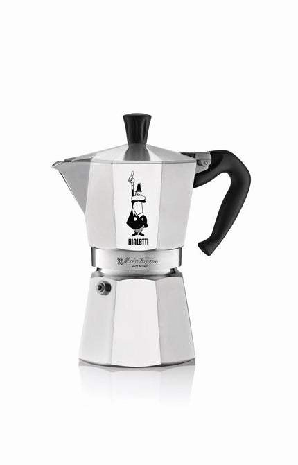 The Bialetti Moka celebrates more than 80 years of classic design elegance and technological simplicity. The iconic Moka Express produces a rich, authentic espresso in just minutes. The aluminum pot features Bialetti’s distinctive eight-sided shape that allows it to diffuse heat perfectly to enhance the aroma of your coffee.