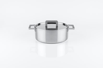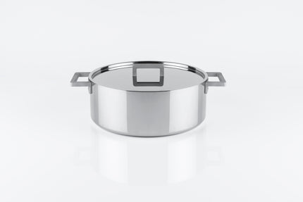 The Norma casserole pots made of tri-metal: the external chromed stainless steel guarantees greater heat conductivity and allows use on induction plates; the first internal layer is made of aluminum for the diffusion of heat; the heart is made of 18/10 stainless steel for perfect cooking.