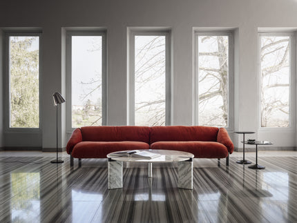 In the 2 or 4 seater sofas, also made with a metal structure made with the skill of Ghidini 1961 known for its excellence in metalworking, the black velvet of the covering gives a strong and distinctive character suitable for both modern and traditional environments. A reinterpretation that fully embraces the principles of contemporary design.