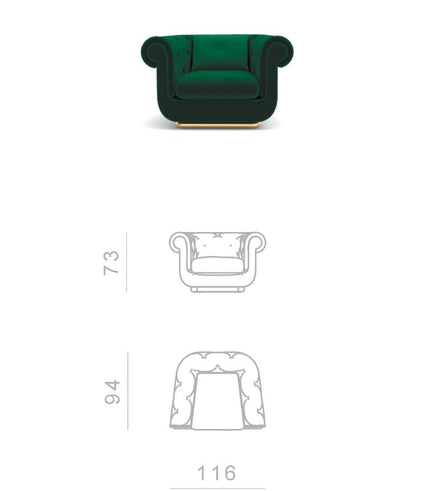 Here, the classic Chester is revisited with a dreamlike language through the roundness of the shapes and the fluidity of the lines, while the backrest, unlike the Portofino, maintains the classic capitonnè.