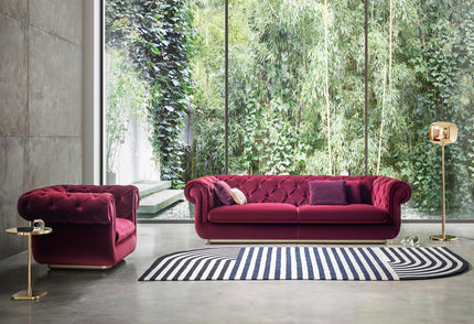 Here, the classic Chester is revisited with a dreamlike language through the roundness of the shapes and the fluidity of the lines, while the backrest, unlike the Portofino, maintains the classic capitonnè.