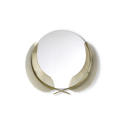 Sunset Mirror with casted palm leaves in brass, designed by Nika Zupanc.