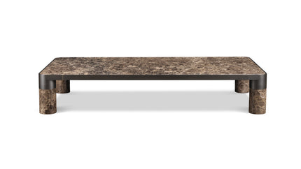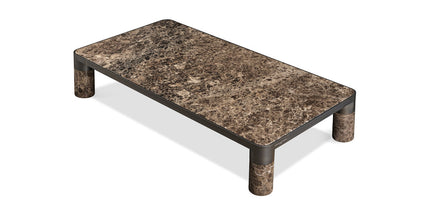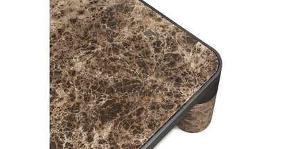 Structure - Die casted aluminum on the angular elements and extruded aluminum for the supporting structure on the perimeter. Legs: marble, wood.