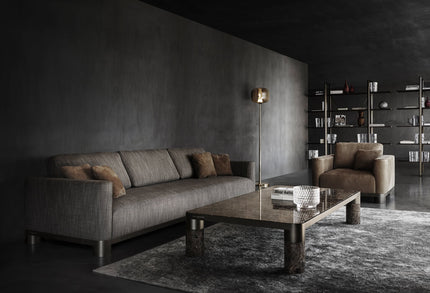 With the massive dimensions and the softness of the fittings, the materials are enhanced in their characteristics creating a sculptural effect and giving a distinct personality to each element of the collection.