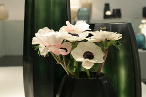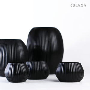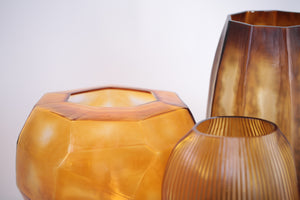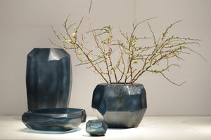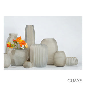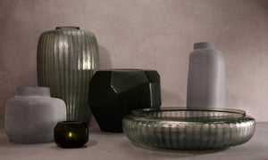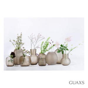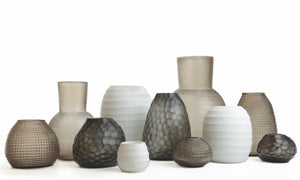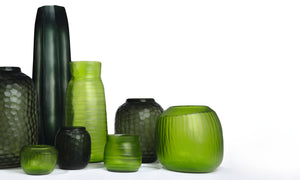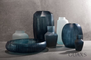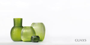 This family-based German company produces glass of the very highest level of craftsmanship. Mouth-blown, cast and hand-carved, their polished vases and tea-lights from celebrate the intimate interplay between sculptural form and texture. Guaxs designers are proud to draw their inspiration equally from ancient cultures and modern influences. The bold use of colour marries happily with any architectural style. Mondopiero will be proud to show you our newly-arrived Guaxs collection in greens, blues, black and buttery browns.