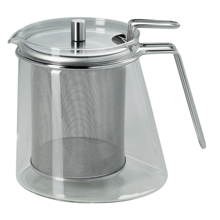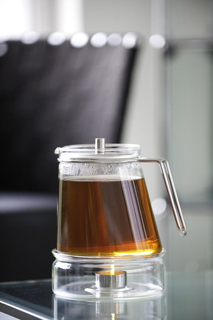 The elegant Ellipse tea pot - 1.3 litre, designed by Tassilo von Grolman in 2010, is perfect for the process of preparing tea with calm and relaxation. It's made in stainless steel 18/10 and heat-resistant borosilicate glass with an asymmetric form, round at the top and elliptic at the bottom. There are silicone-printed feet that will help protect and insulate surfaces.