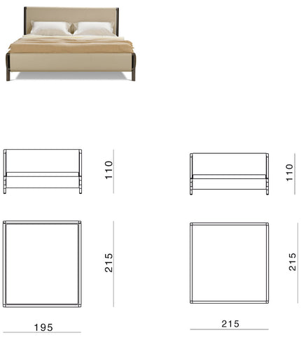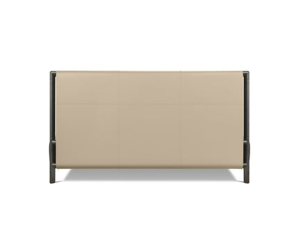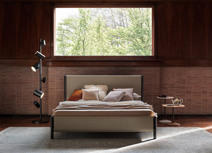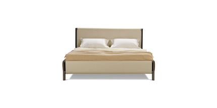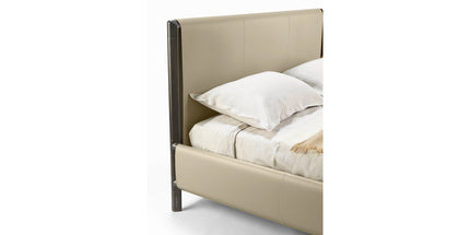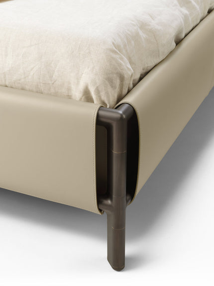 The footboard and bed frame boards are made of pure hand-stitched Italian saddle leather, just like the headboard, which features a generous resting surface.