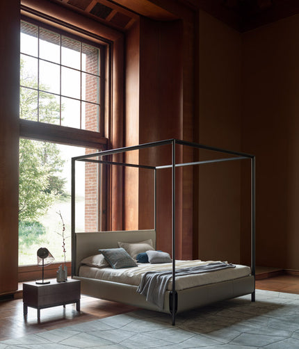 The structure of the Frame bed is in casted aluminum and saddle leather, emphasizing the handmade process needed to manufacture the bed.