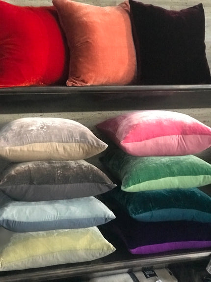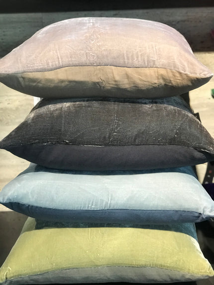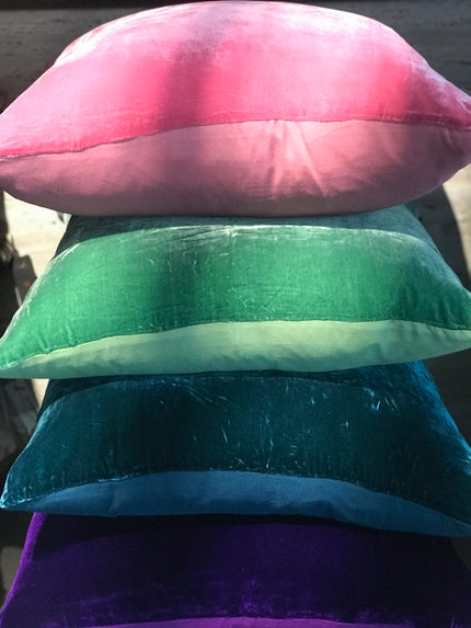 Cushion covers in vibrant jewel-like and earthy colours with luxurious soft silk velvet on one side and on the other, strong soft linen.