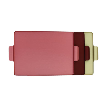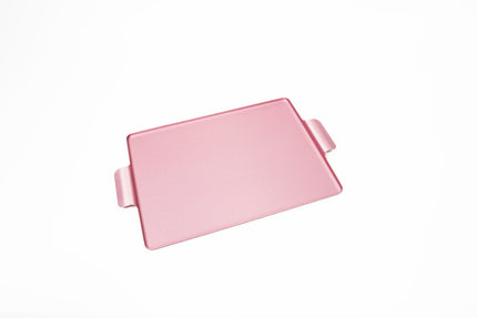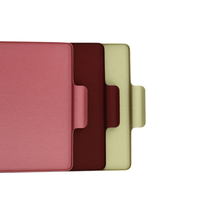 Anodised aluminium tray/ platter, brushed surfaces and hand finished in colours Rose, Champagne and Burgundy.