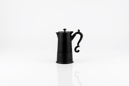 Bringing together timeless beauty and original forms, Lady Anne draws inspiration from the refined silver coffee sets of the eighteenth century, revisited with a functional approach, to make coffee as tradition demands and to serve it with elegance. This total black version exalts the clean lines of the truncated cone shaped body in contrast with the sinuosity of the handle, making the coffee pot into a veritable centrepiece.