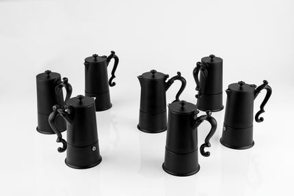 With its new matt black finish, the Lady Anne espresso coffee pot designed by Laura Caffi is more stylish than ever.