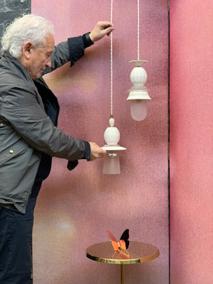 Mondopiero stocks selected pieces including droplet/ pendant lights, candlelights/ holders, table lamps and table pieces.