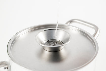 Designed by Rodolfo Dordoni, the stainless steel Universal Lid can be used with all KnIndustrie pots. The top handle can be used to rest your cooking spoon. When turned over the lid serves as a trivet or a practical cake stand.
