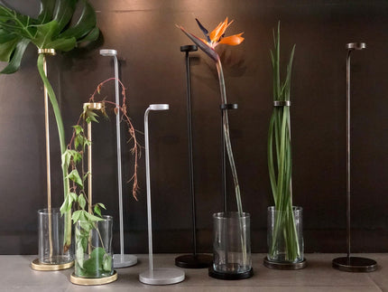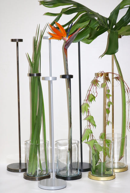 Renowned for being ahead of the curve in the world of design, Piero Gesualdi’s cleverly designed Stalk Stands are truly out of the ordinary. Fabricated from steel and available in Antiqued Brass, Polished Brass and Powder Coated Silver and Black, the Stalk Stand is perfect for a single stem bloom or foliage.