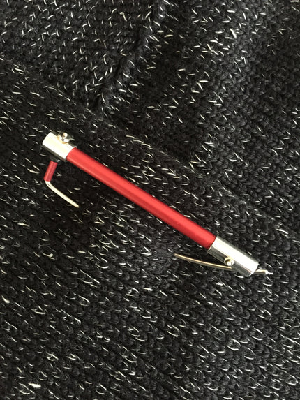 The Arc knitwear pin is an elegantly designed and handcrafted lightweight, sterling silver and anodised aluminium piece