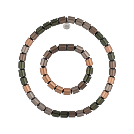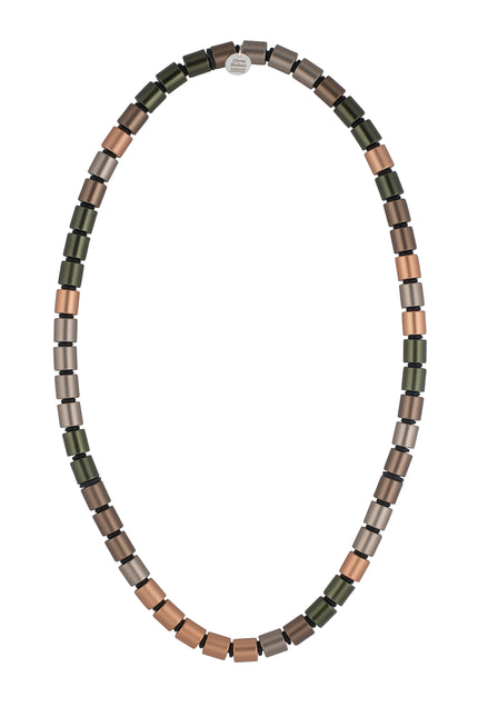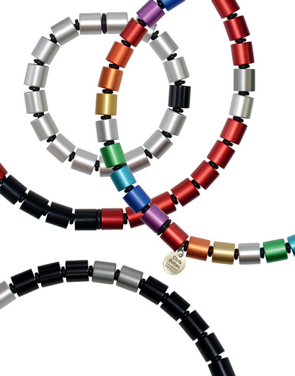 Handmade in anodised aluminium beads, threaded on nitrile with black o-rings and super strong magnetic sterling silver clasp.