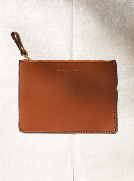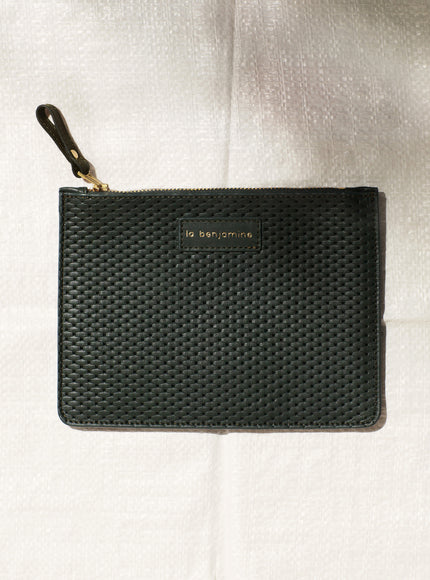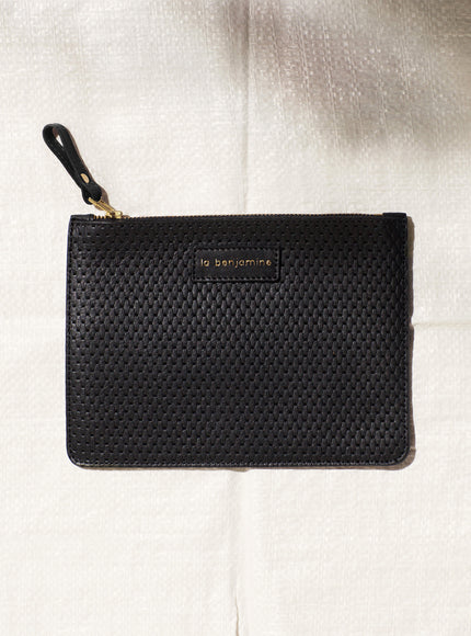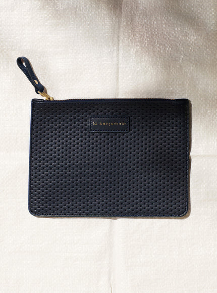 The zipped clutch/ wallet is available in four colours, in 100% smooth or perforated leather. Made in Tunisia.
