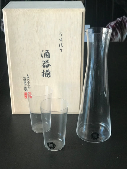 These remarkably thin drinking glasses called “Usu-hari” (thin glass) are each carefully hand blown and crafted by master craftsmen in the Sumida district in downtown Tokyo. They are created using the same techniques that was traditionally used for hand-making glass light bulbs. Less than 1mm thick, the feel of it in your hands, the sound ice makes when it is swirled in the glass, and fineness of the rim is truly exquisite—and unique to this glass.