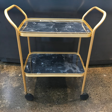 The Kaymet Trolley has been produced in London since the 1950s. The Gallery anodised aluminium 2-tier trolley with laminate black marble design top and ribbed extruded edge and cutout detail is hand finished and assembled.