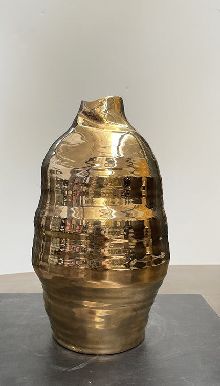 Part of the 300 Collection, these unique hand made glazed black stoneware vases with 24k Gold Finish are created by family-run pottery workshop, Apparatu, Barcelona.