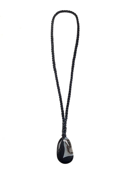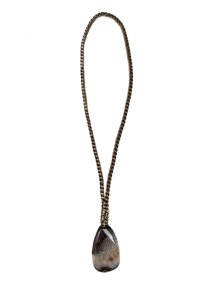 Lyn&Tony "Black Magic" Necklace $165.00 Black Agate on Black Leather Black Agate on Pewter Leather − + Add to Cart Delivery Returns & Refunds Request Information Black agate and woven kangaroo leather necklace. Brand Information