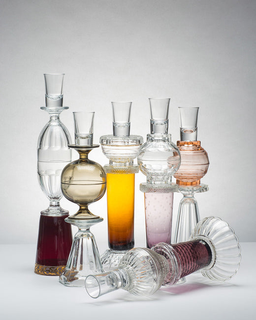 Amsterdam artist and designer Roos Kalff creates expressive and decorative forms using vintage glass pieces and hand blown glassworks.