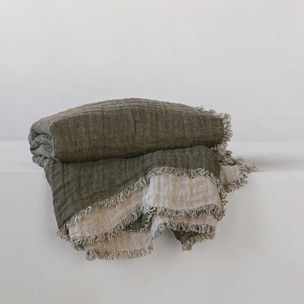 Generous in size and luxurious to nestle into, our Crush Double Linen Throw is a pure linen throw blanket that works as a beautifully textured accent piece to enhance your bed or sofa.