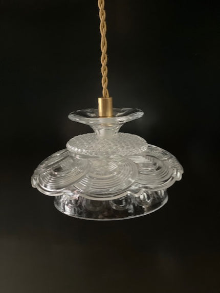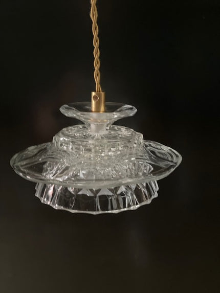 Fireflies are small pendant lights made of vintage glassware. Each one is unique.