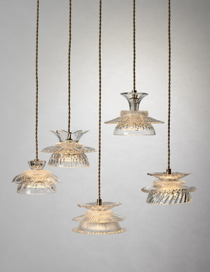 Studio Kalff, NL uses vintage glassware as the material basis to create new lighting thereby changing the form and function of the original objects. All the glassware is handmade and unique, composed of individually selected elements.