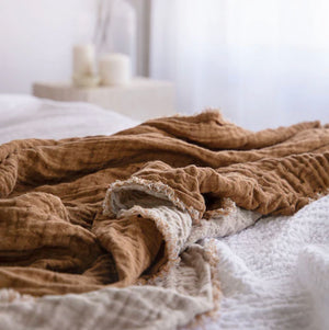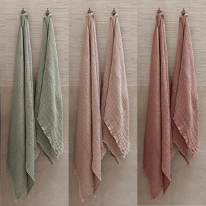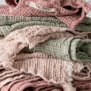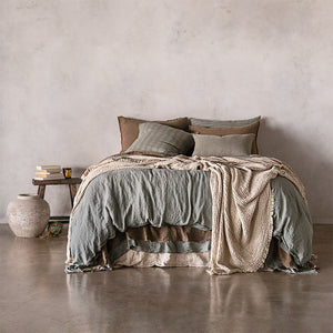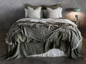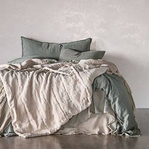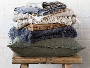 The blanket collection is woven from a blend of cotton and linen. As a result, these products go through a different dyeing process to our 100% linen products. Slight variations in colour will be apparent between the pure linen and blended products.