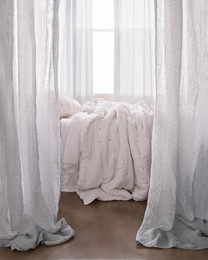 Come to bed. Luxuriate a little. You’ve never been enveloped in linen like this: an embrace of sheer quality, an almost sinful softness, with the calming cool of colours created carefully by dyeing singly, one by one, each thread of yarn, before weaving.