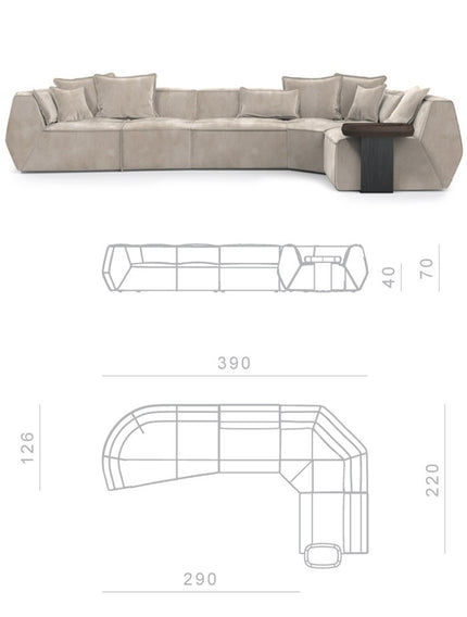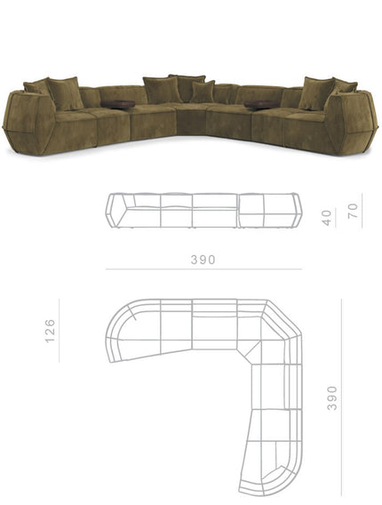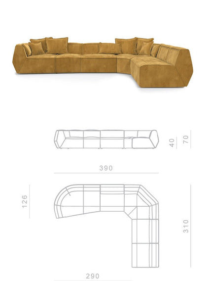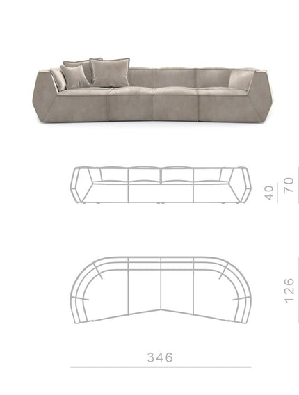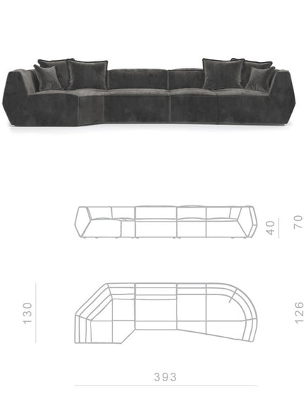Infinite in endless seating compositions; and infinite in freedom of expression. This sofa, with only three elements, allows for a wide range of seating compositions, each with different depths.