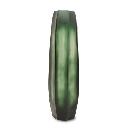Handblown and hand finished, cut and polished/sanded glass vase.